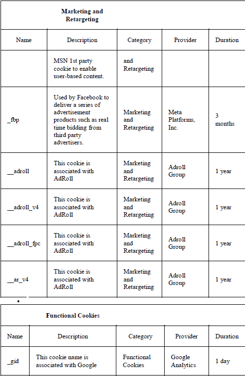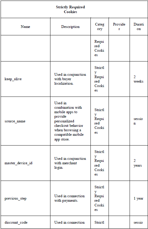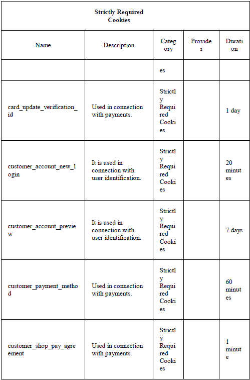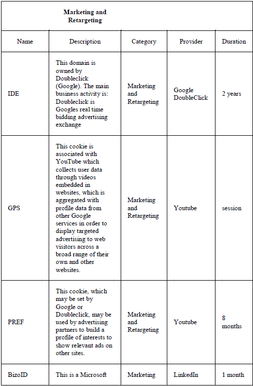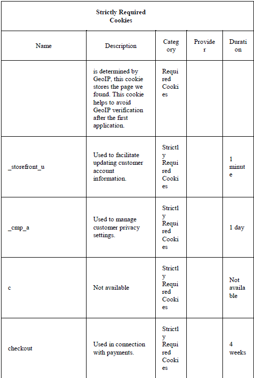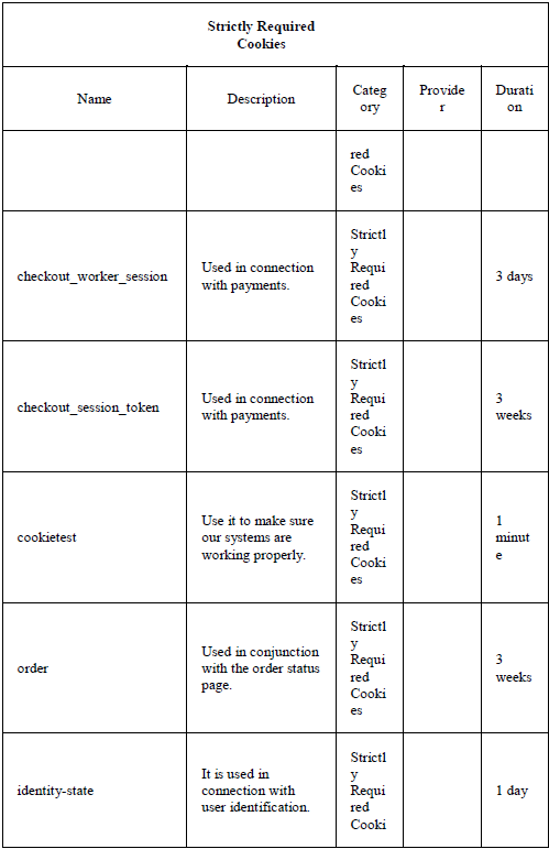 Purpose of each of the cookies used: